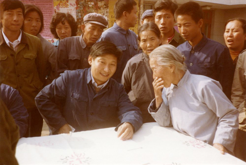 这是1983年,时任河北省正定县委书记的习近平,临时在大街上摆桌子听取老百姓意见。新华社发