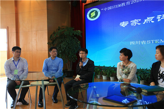 下午活动的内容是STEM校长圆桌论坛、四川省STEM专家组互动交流,由四川省教科院兼职研究员林家锐主持。